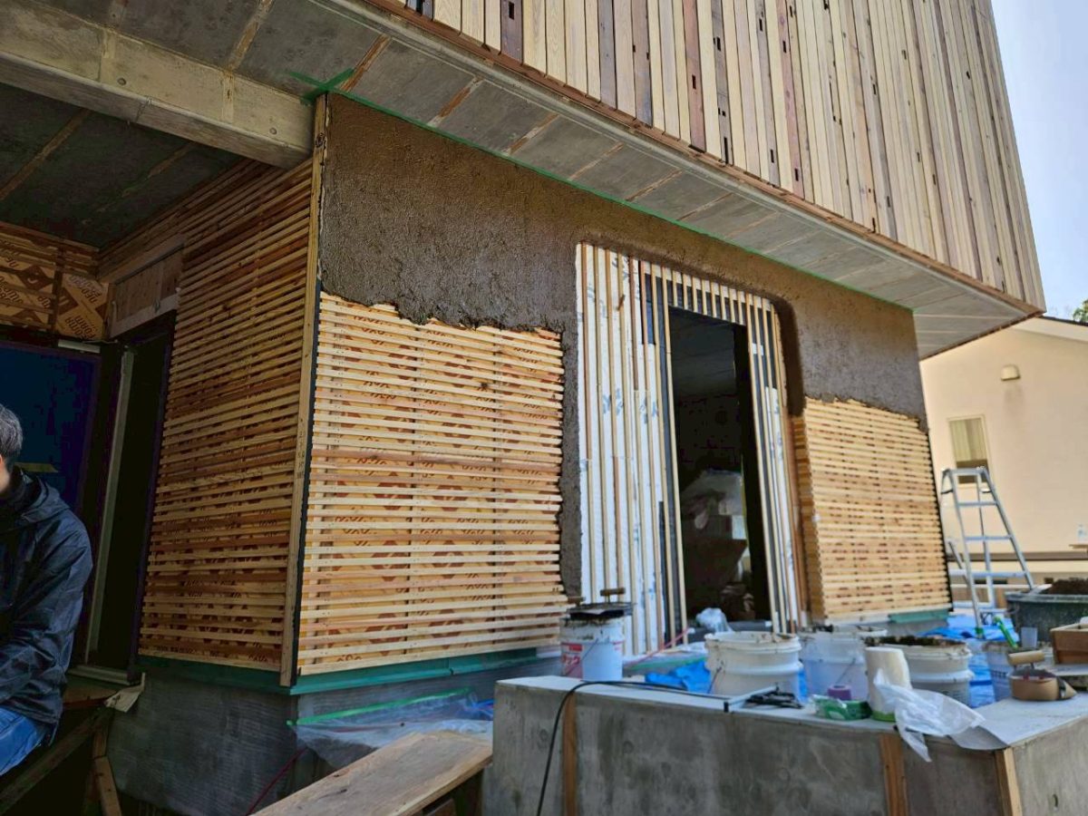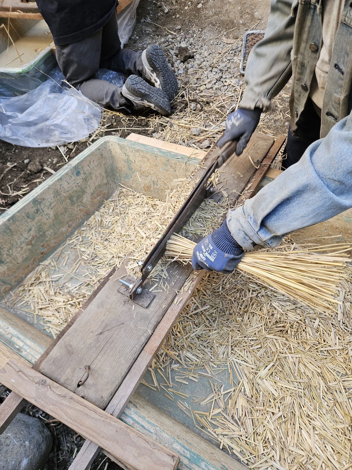 木と木の隙間にも土が入りやすいように、藁の長さをいつもよりちょっと短く、そして短くする分多めに入れて施工することが決定しました。