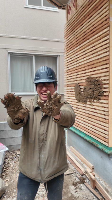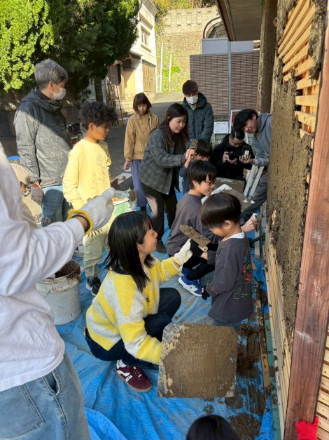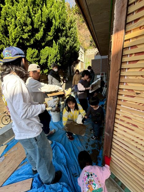 こうやってみんなで作った壁は職人が作る均一な美しい壁とは言えないまでも、手の「跡」や「笑い声」も壁に刻まれる、豊かな壁が出来上がります。