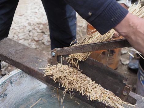 藁を細かく。ご安全に!