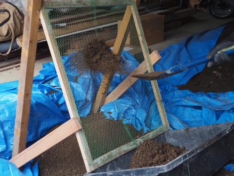 現場の土のふるい分け