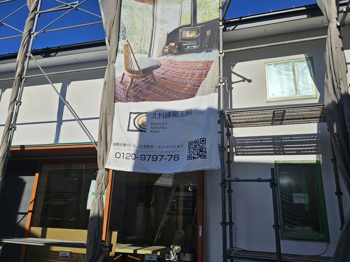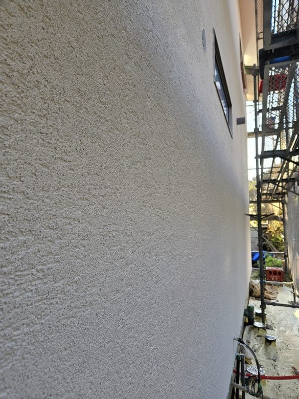 外壁仕上げ工事も今日で3日目。80%が完了いたしました。