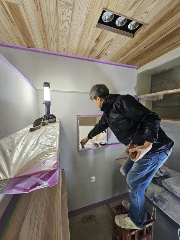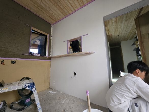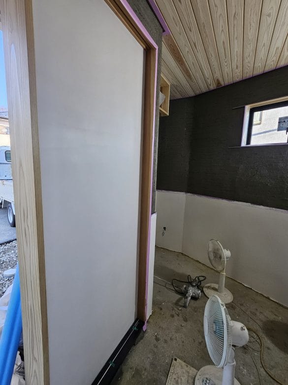 奥の部屋の漆喰仕上げも進めていきます。
