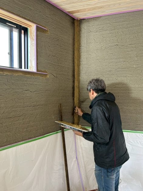 土壁仕上げの準備を進めます