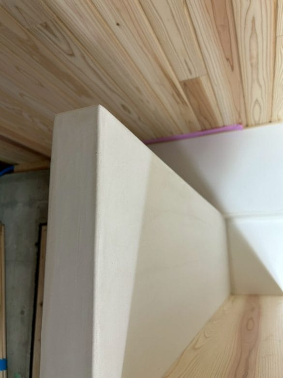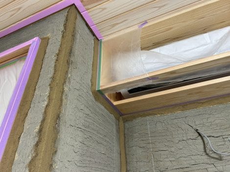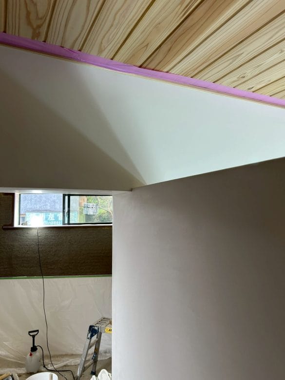 漆喰の工事が完了しました。土壁仕上げの部分の準備に取り掛かります