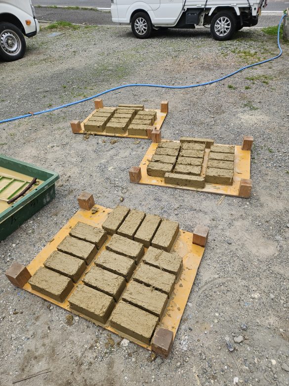 今日は下小屋て仕込み作業。土で作る日干しレンガを作成しました
