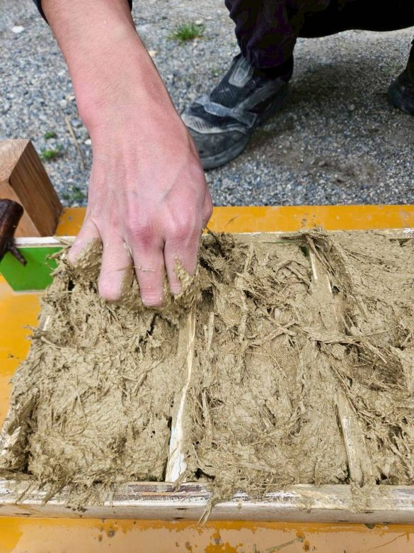 木枠に先ほど作った土を充填してしっかり詰め込みます