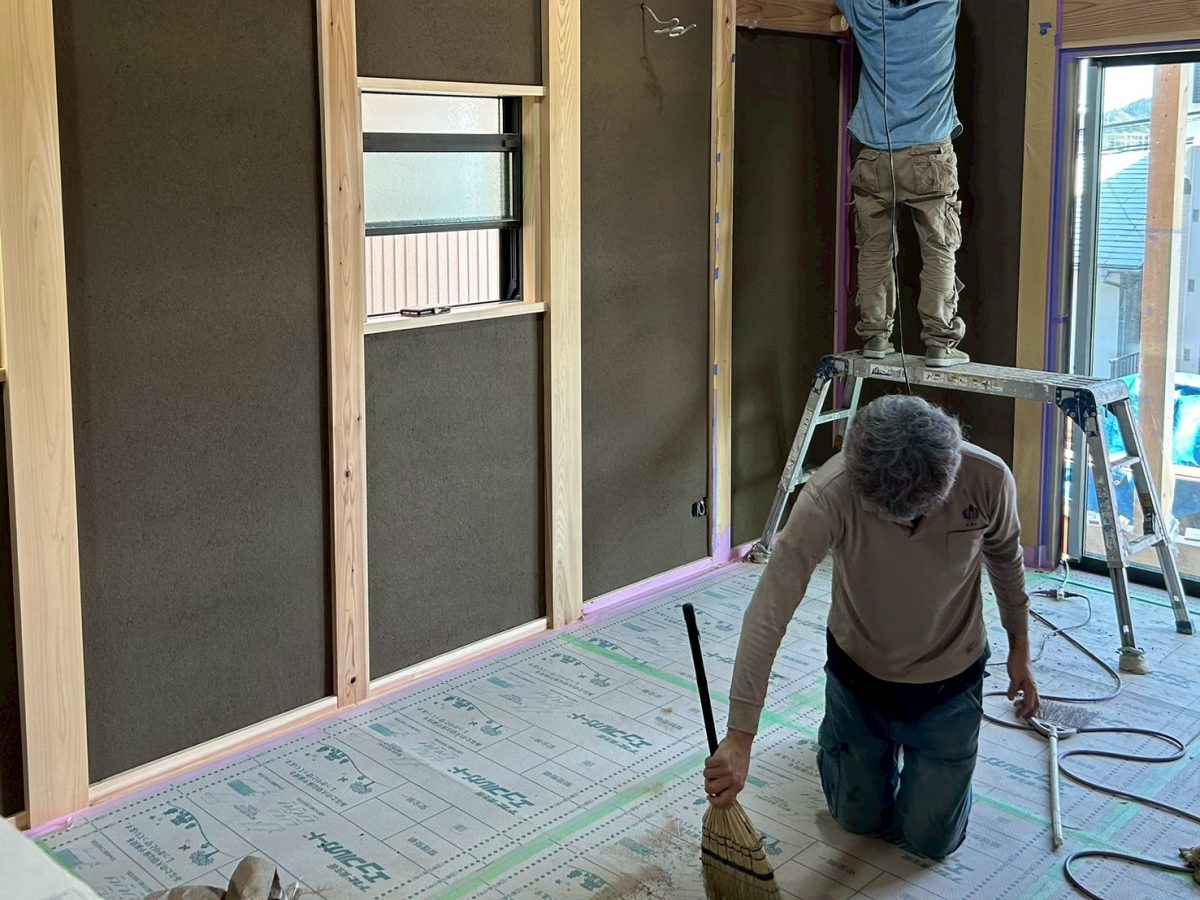 本日最終日です。年初の荒壁塗より4か月。左官工事完了です。ありがとうございました。