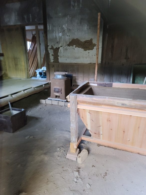 山梨県身延町・湯之奥集落の「夜学舎」には、かつて手揉み製茶に使われた焙炉(ほいろ)が3台、壁に沿って造りつけられていました。長年の時を経て完全に崩れ落ちていたその焙炉を解体し、取り出した土と木材を最大限に活かして、1台の焙炉として再生しました。捨てるのではなく、蘇らせる——そんな「もったいない」の精神が息づくワークショップです。