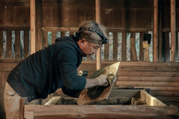 舞台となった「夜学舎」は、1931年(昭和6年)に村人たちが自らの手で建てた地域の学び舎。かつてはここで製茶や味噌作りも行われていました。その歴史ある空間で、地域内外から集まった参加者が共に汗を流し、湯之奥集落に受け継がれてきた暮らしの文化を未来へとつなぎました。