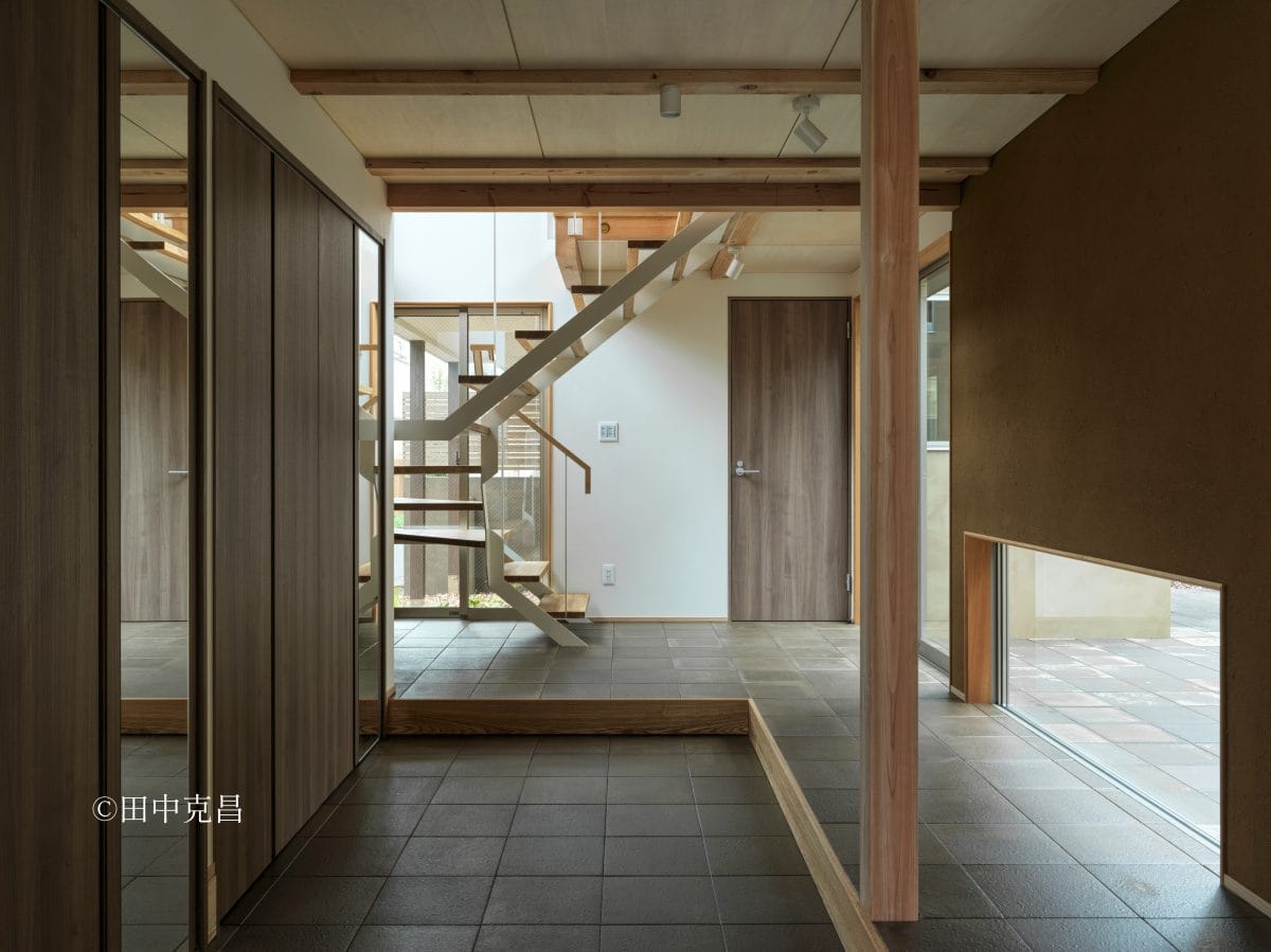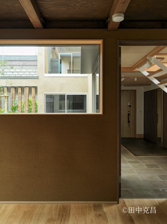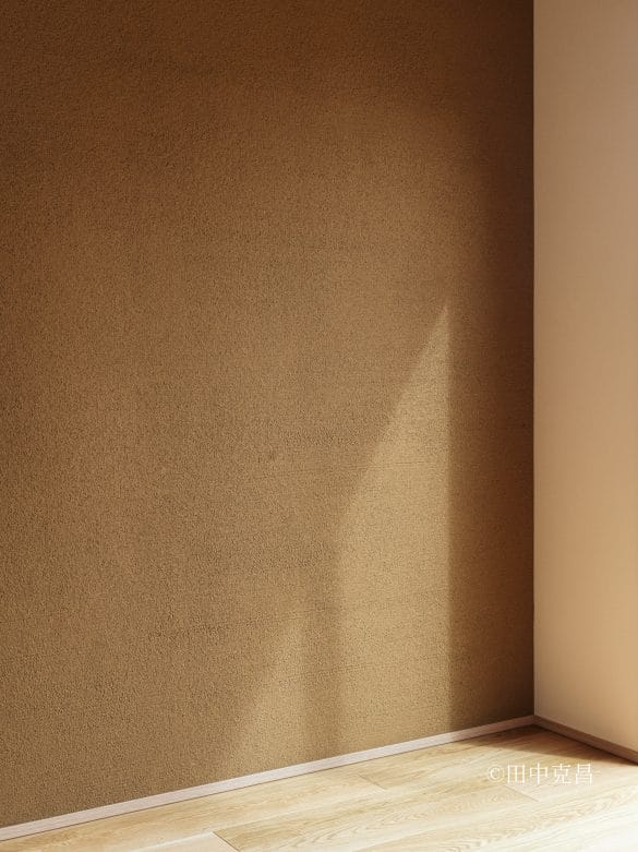 内装に使用することで、土壁の柔らかい質感が光線を優しく吸収する。