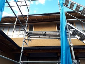 掻き落とし仕上げは塗り付けた後に剣山を使い表面を落として
