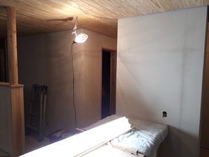 2019/06/12 水曜日 番頭のブログ 土と・・・ 1 こんにちは! 今回のブログは以前に荒壁を塗りいよいよ仕上げとなりました現場です 外周周りの壁は荒壁となり、間仕切り壁はPB下地となっています その為PBには石膏で下塗り、荒壁には土での中塗り 仕上げは糊土と漆喰となっています 糊土の配合は左菊オリジナル 表情はこの様な感じです 藁を見せる感じで、落ち着いた雰囲気の空間が出来ますね。 次回は漆喰のお部屋とドライウォッシュをご紹介します
